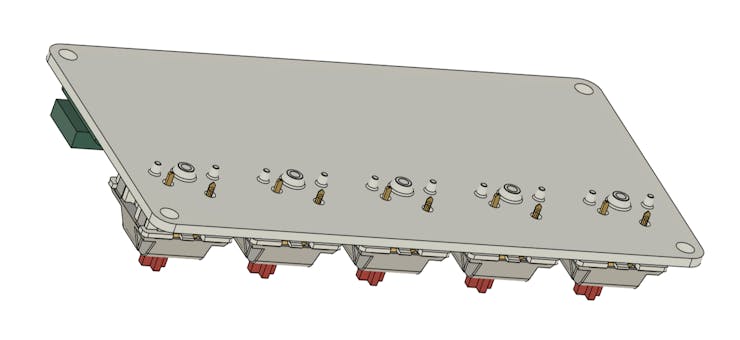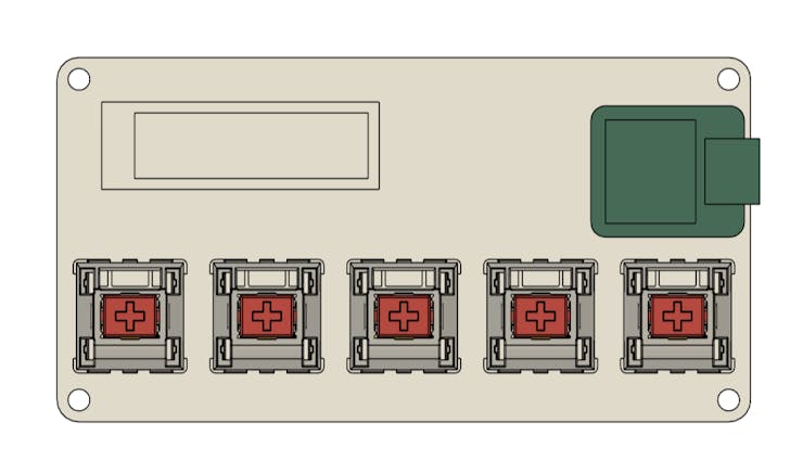 Finally, we placed keycaps onto the five mechanical switches to finish the build. At this point, the PastePal V2 macropad was fully assembled and ready for programming and use.