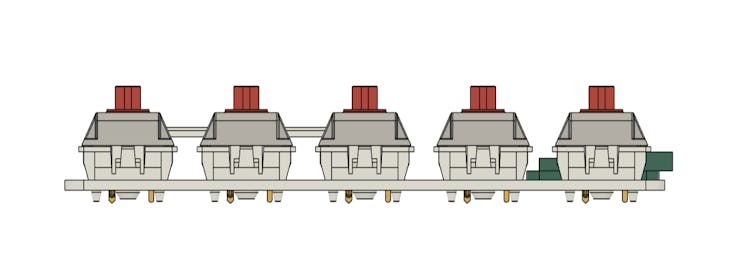 • Five mechanical switches, each connected to the XIAO microcontroller.